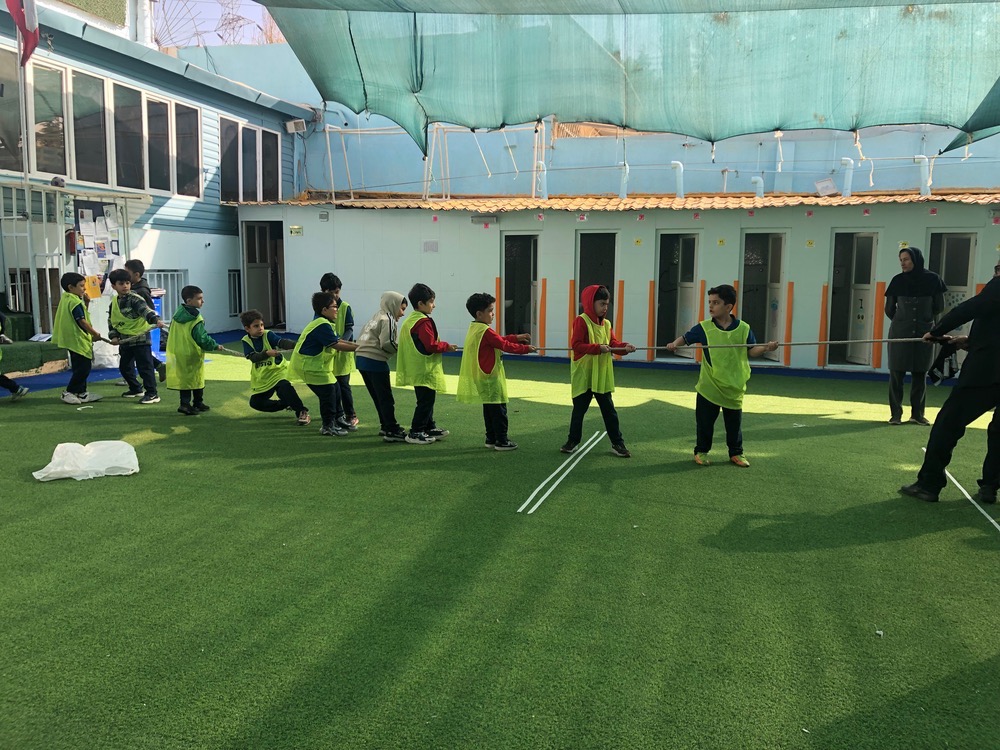 پس از سخنرانی مدیر مدرسه، برنامههای شاد و متنوعی برای دانشآموزان تدارک دیده شده بود. از جمله این برنامهها، برگزاری مسابقه پرهیجان طنابکشی بین پایههای مختلف بود که فضایی مملو از شادی و رقابت سالم را در حیاط مدرسه ایجاد کرد. همچنین، مسابقات شاد گروهی دیگری نیز برگزار شد که نقش بسزایی در تقویت روحیه همکاری و کار تیمی بین دانشآموزان داشت.