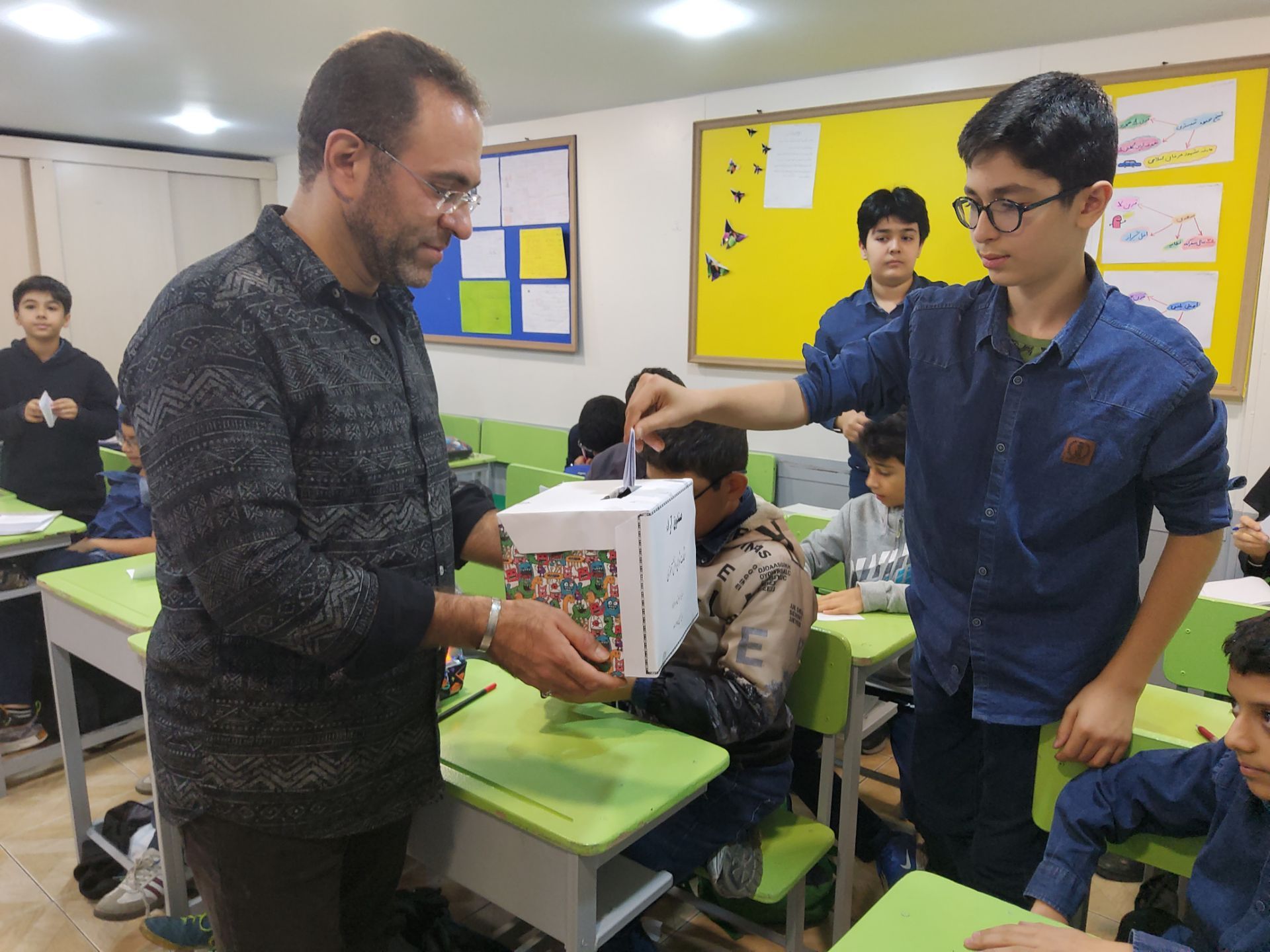 بچهها با اشتیاق به کاندیداهای مورد علاقهشان رأی دادند تا صدایشان در مدرسه شنیده شود.