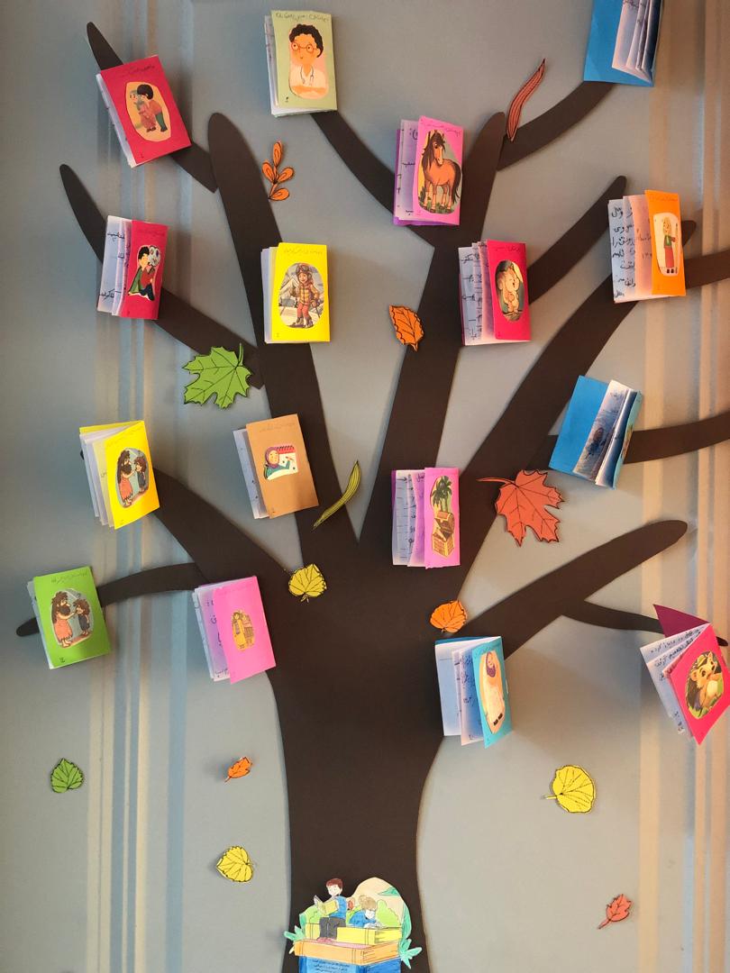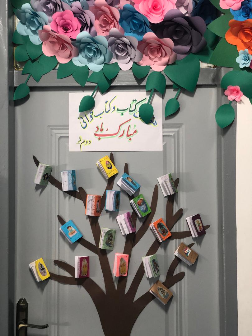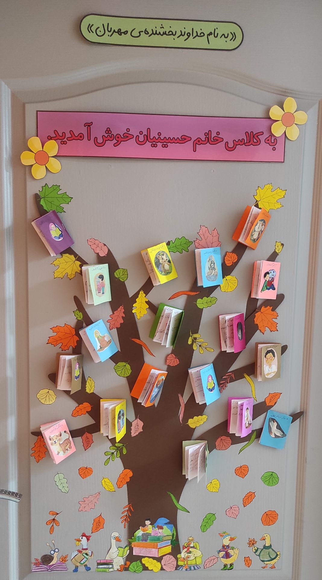 کتابهای ارزشمند تولید شده توسط فرزندانتان،هماکنون به صورت نمادین به در و دیوار کلاس متصل شدهاند و همچون برگهای درختی پربار، فضای آموزشی ما را زینت بخشیدهاند. این نمایشگاه زنده، امکان بازدید و مطالعه آثار برای همه دانشآموزان را فراهم کرده است.