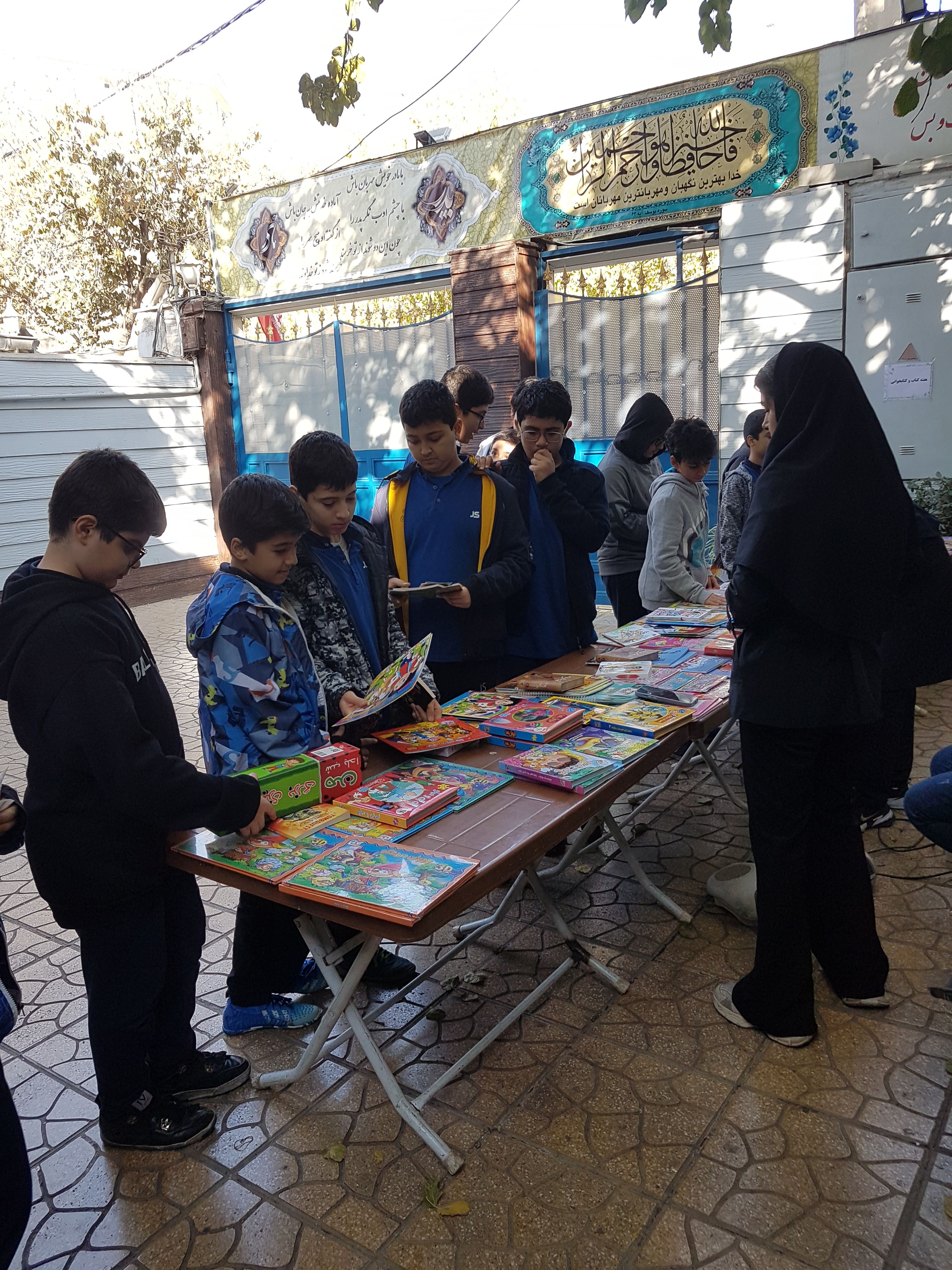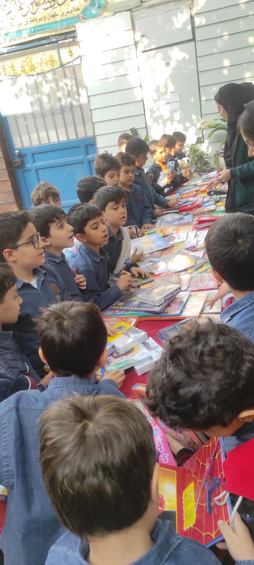 به مناسبت فرارسیدن هفته کتاب و کتابخوانی، نمایشگاهی با حال و هوایی ویژه در فضای باز حیاط مدرسه برپا شد. در این نمایشگاه، کتابهای رنگارنگ بر روی میزهایی مرتب چیده شده بودند تا دانشآموزان بتوانند به راحتی در میان آنها بگردند و از لمس کردن و ورق زدن صفحات لذت ببرند.
