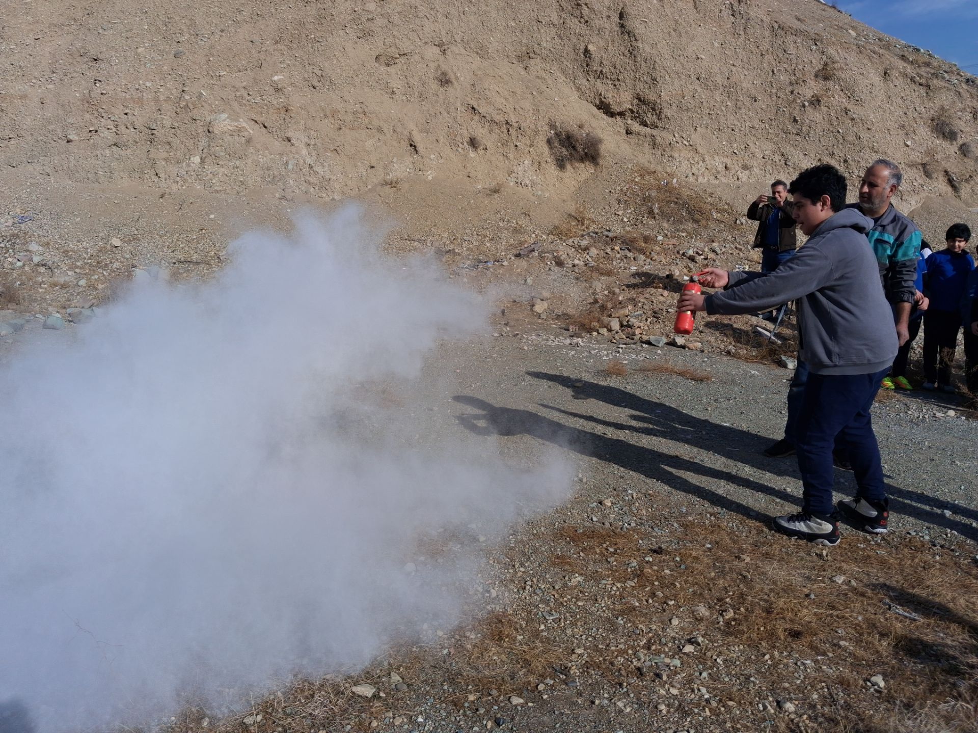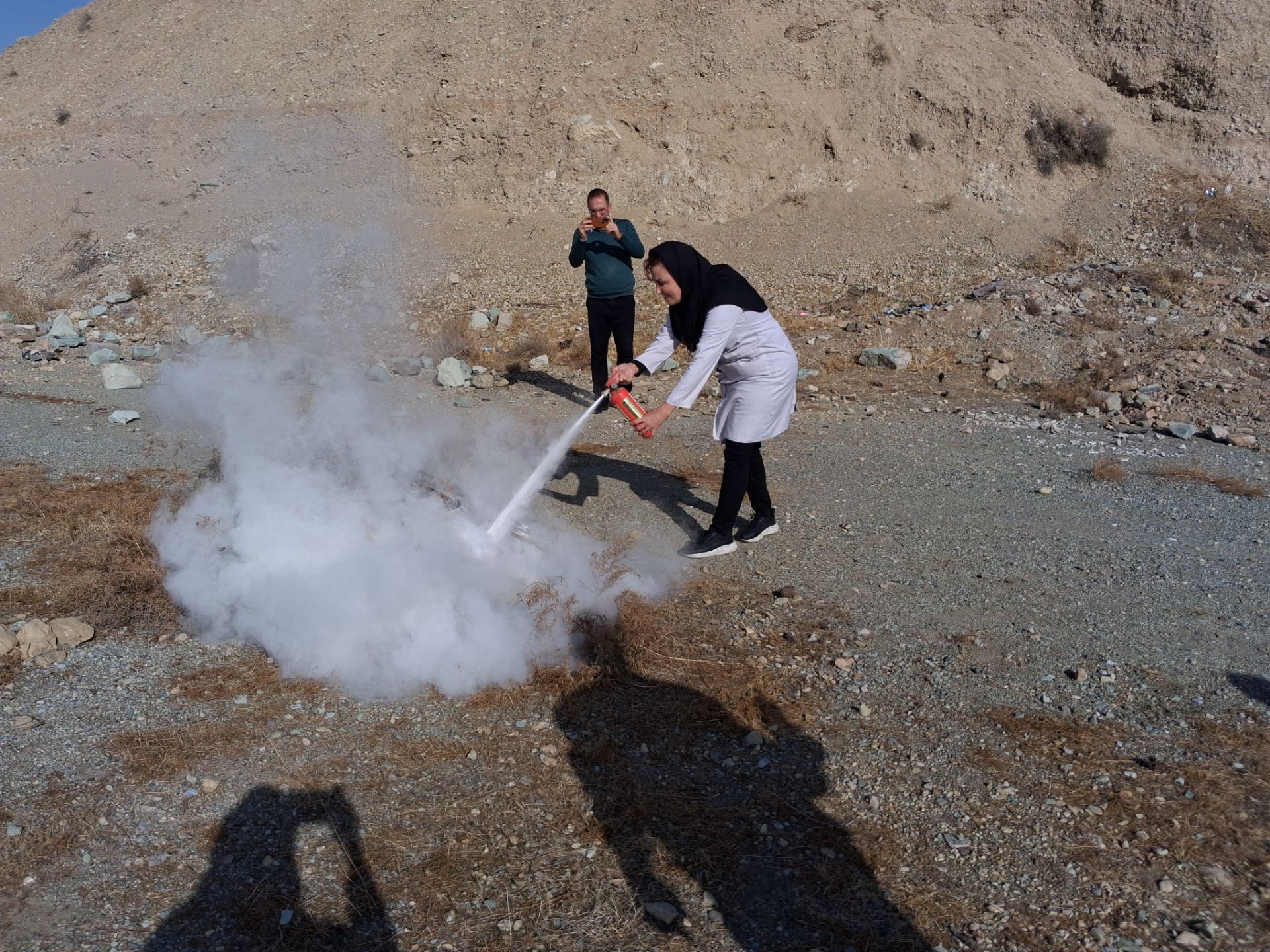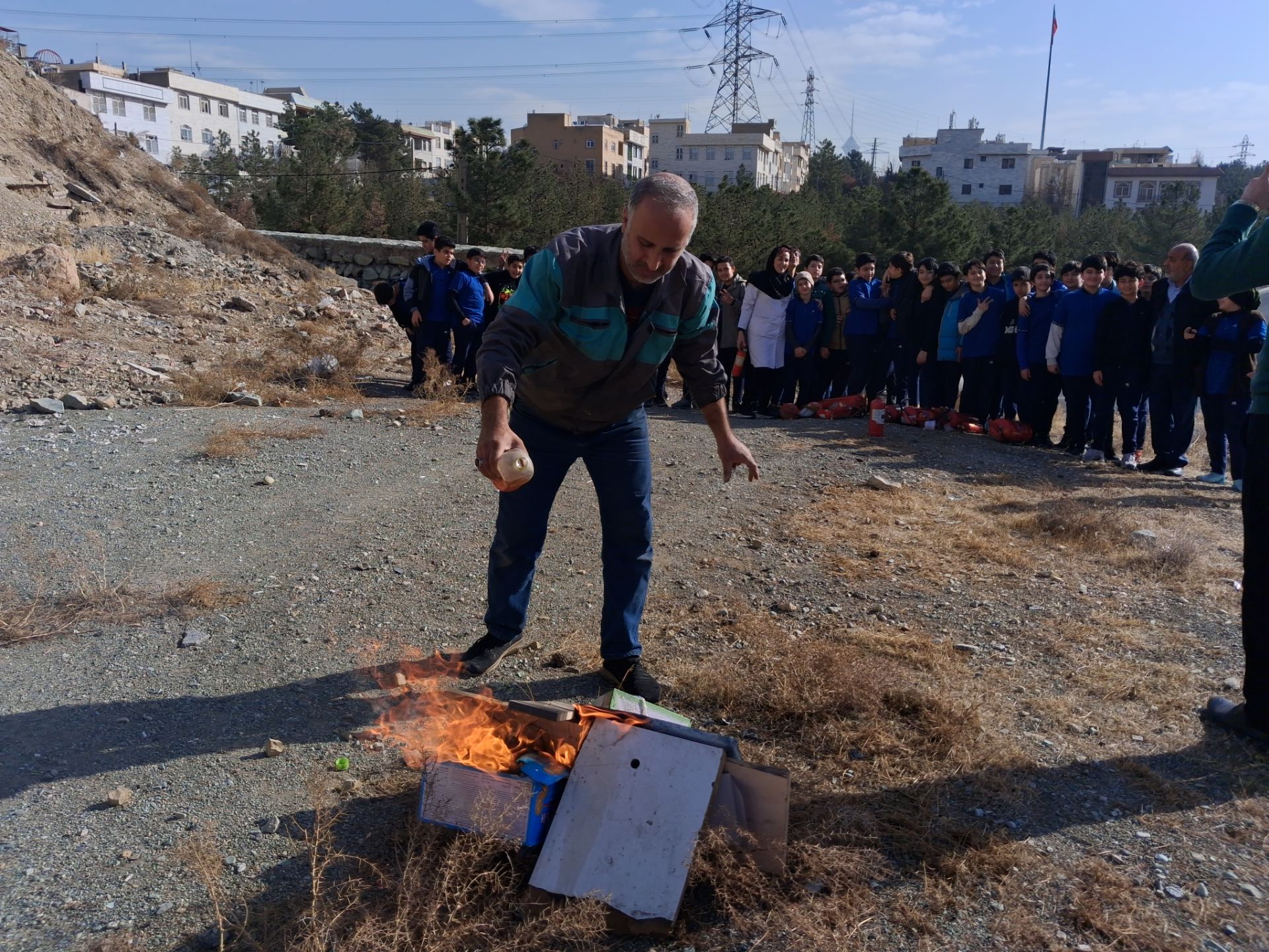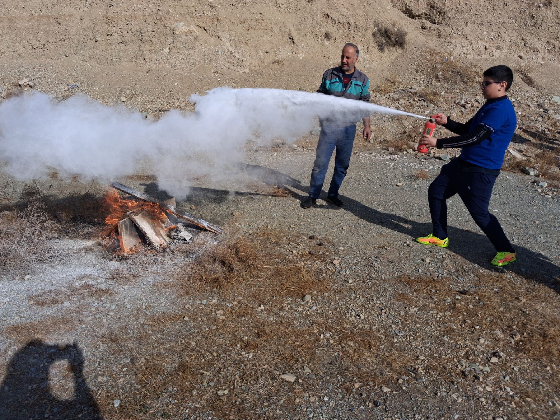 در بخش عملی و هیجانانگیز این رویداد، تعدادی از دانشآموزان داوطلب، این فرصت را یافتند تا در محیطی کاملاً ایمن و تحت نظارت دقیق، مهارت خود را محک بزنند و آتشی کنترلشده را خاموش کنند. شجاعت و علاقهی این عزیزان، الگویی برای همکلاسیهایشان بود.
